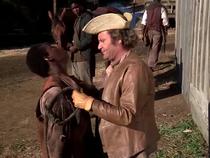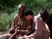 Leslie Uggams, who played Kizzy, had the largest and most demanding role. Whereas LeVar Burton and John Amos shared the role of Kunta Kinte, the producers used makeup and state-of-the-art prosthetics to allow the thirty-three-year-old Uggams to play Kizzy from a teenager into her seventies. Uggams also had to portray a wider range of emotions than any other character. Over the course of three episodes, Kizzy learns the family history from her father, Kunta; is sold away and separated from her family; is raped by her new master, Tom Lea; gives birth to the son produced by this rape, Chicken George; and becomes the matriarch for a community of enslaved people. Uggams’s best scenes come opposite Sandy Duncan, who played Missy Anne Reynolds, the niece of Dr. William Reynolds, who owned Kizzy and Kunta. In one scene, Kizzy helps Missy Anne select clothes for dinner and Missy Anne confides in Kizzy about her romantic involvement with a distant cousin. The characters talk almost as friends, and viewers learn that Missy Anne taught Kizzy to read, a secret they need to keep from Dr. Reynolds. Moments later, over a picnic in a meadow, Missy Anne tells Kizzy that her uncle is planning to gift Kizzy to her. Producer Stan Margulies described this episode as the “one out-and-out woman’s show in the series,” and as in a melodramatic soap opera, this scene works because Uggams and Duncan wring additional emotion and meaning out of the script. Duncan is upbeat as she delivers her lines, giggling and smiling while explaining the naturalness of slavery and patriarchy. Uggams’s face registers confusion, but also a sort of wiliness as Kizzy draws Missy Anne out. Missy Anne is repeating rationales for slavery that outlived the peculiar institution and propped up romantic visions of plantation life. Roots undermines these views by pushing the idea of childhood friendship between slaves and masters to a ludicrous extreme.